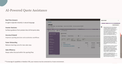 During the September 2025 session “NextGen CPQ Unlocked: AI, Quote Designer & The Future of Admin”, Oracle showcased how CPQ is evolving with AI-generated quote summaries, real-time AI-powered assistance, intelligent product recommendations, a reimagined Quote Designer, and a Redwood-driven Admin Experience.